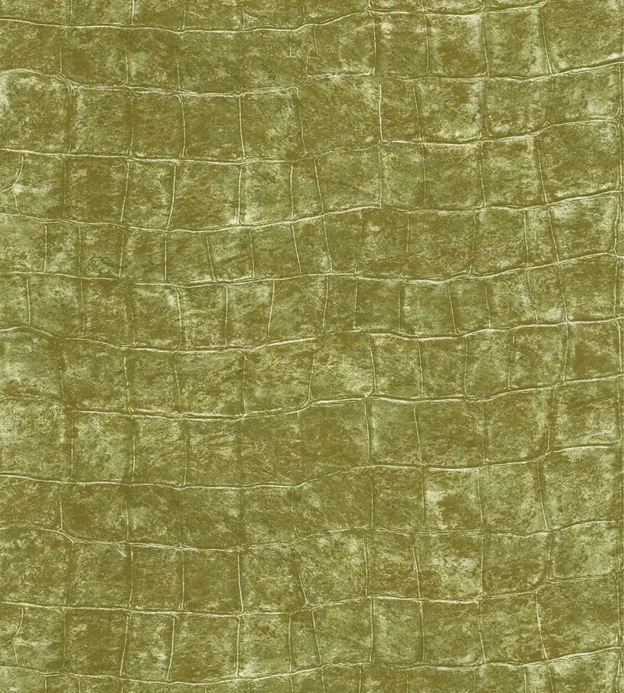 Обои Elitis Anguille Big Croco Legends (арт. VP42606) представляют собой виниловые рулонные покрытия с имитацией кожи. Они подходят для оформления интерьеров в стилях лофт и шале. Цветовая гамма включает успокаивающие оттенки зеленого, что делает их удачным выбором для спальни и гостиной.