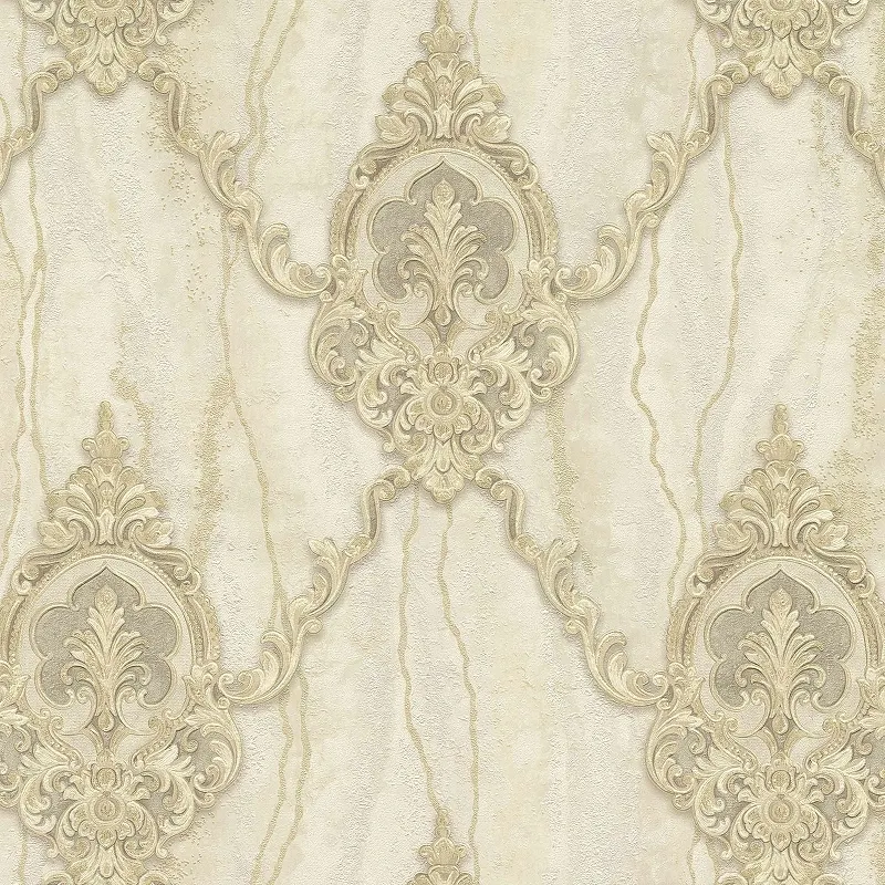 Обои Emiliana Parati Amuleto 83505 Винил на флизелине (1,06*10,05) Бежевый/Золото, Дамаск/Мрамор