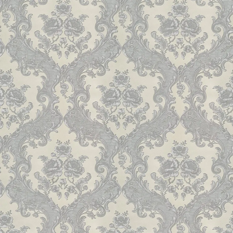 Обои Emiliana Parati Tekko New 20025T Винил на флизелине (1,06*10,05) Бежевый/Серебряный, Дамаск/Цветы