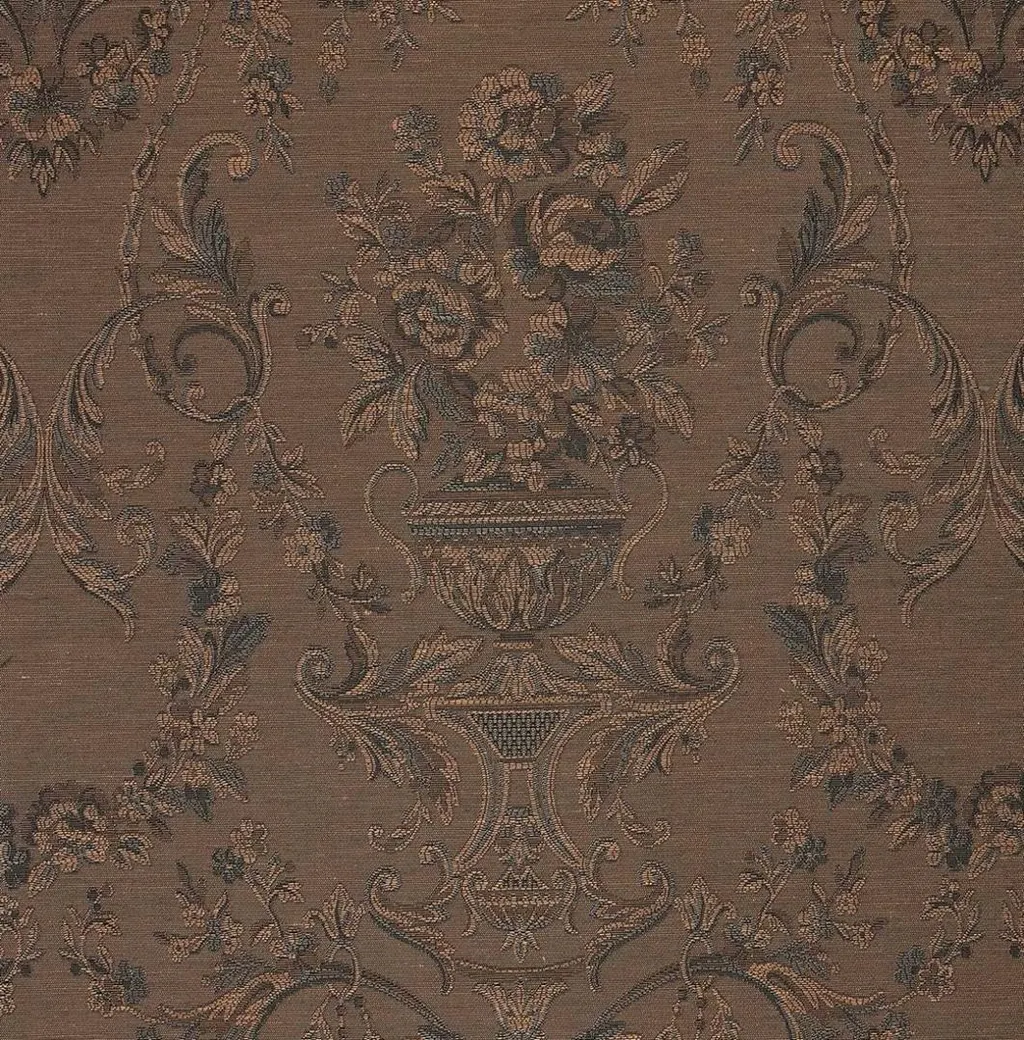 Обои Epoca Seta Di Toscana арт-ST1179 представлены в коричневом цвете и относятся к классическому стилю. Они изготовлены из текстильного материала на флизелиновой основе, что делает их подходящими для различных помещений, таких как гостиные, кабинеты и спальни.