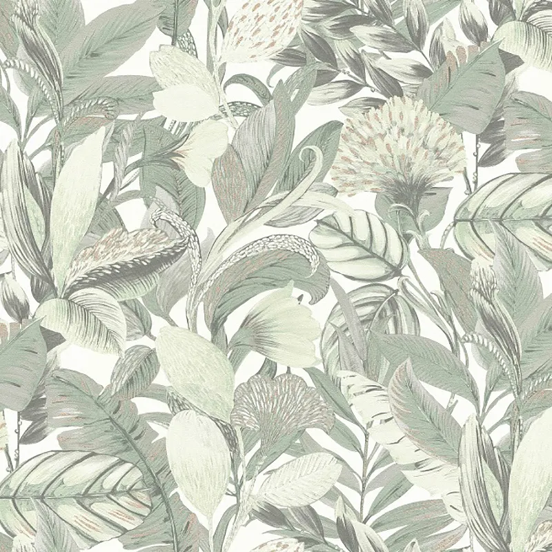 Обои Erismann Elle 2 12115-07 Винил на флизелине (1,06*10,05) Белый/Зеленый, Цветы