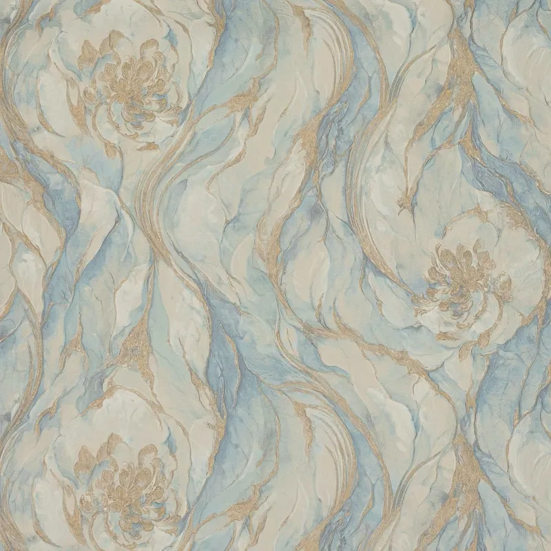 Обои Fipar Gold R 23623 Винил на флизелине (1,06*10,05) Бежевый/Бирюзовый/Золото, Мрамор/Цветы