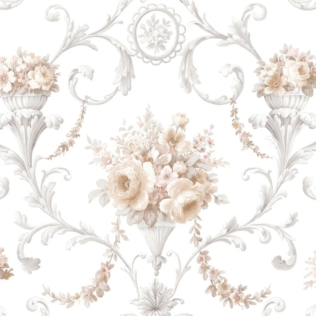 Обои CI38229 от производителя Galerie из коллекции Classic Silks 4 представляют собой виниловые обои на флизелиновой основе. Они имеют нейтральные оттенки белого, бежевого и серого, что позволяет легко сочетать их с различными интерьерами.