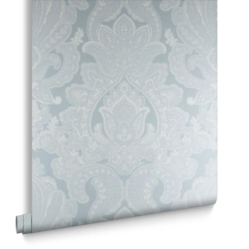 Обои Graham & Brown Established арт-104376 представляют собой флизелиновые рулонные обои голубого цвета с восточным дамасским рисунком. Они подходят для использования в различных помещениях, включая спальни, гостиные и кабинеты, благодаря своей универсальности и стильному дизайну.