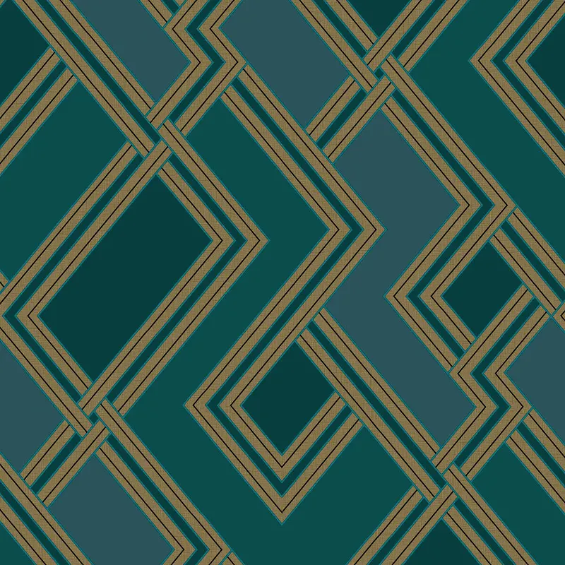 Обои Grandeco Asperia 177504 Винил на флизелине (0,53*10,05) Зеленый/Золото/Бирюзовый, Геометрия