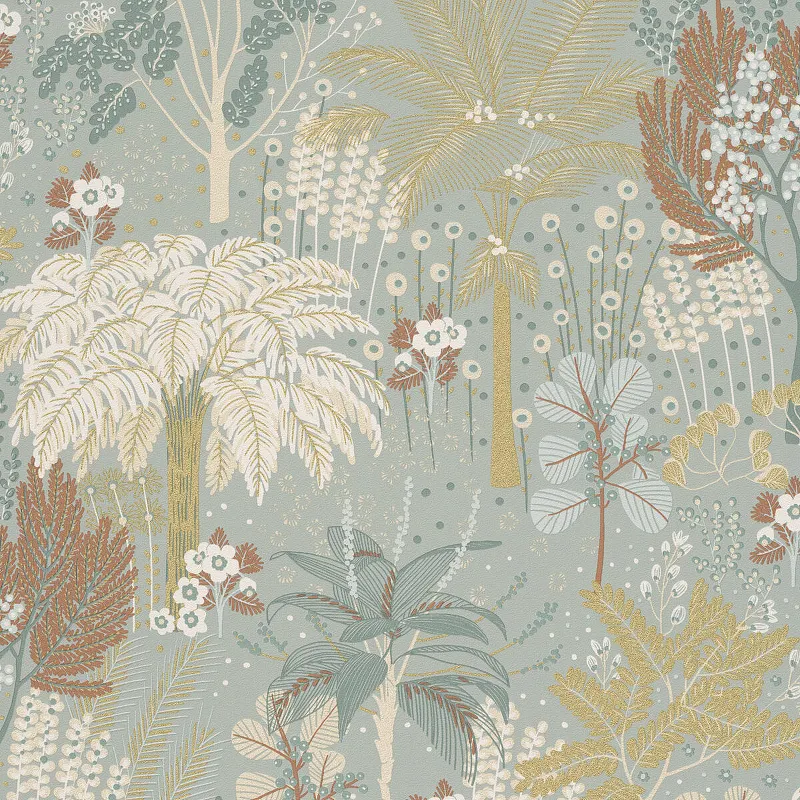 Обои Grandeco Asperia A 54802 Винил на флизелине (0,53*10,05) Зеленый/Золото, Деревья/Цветы