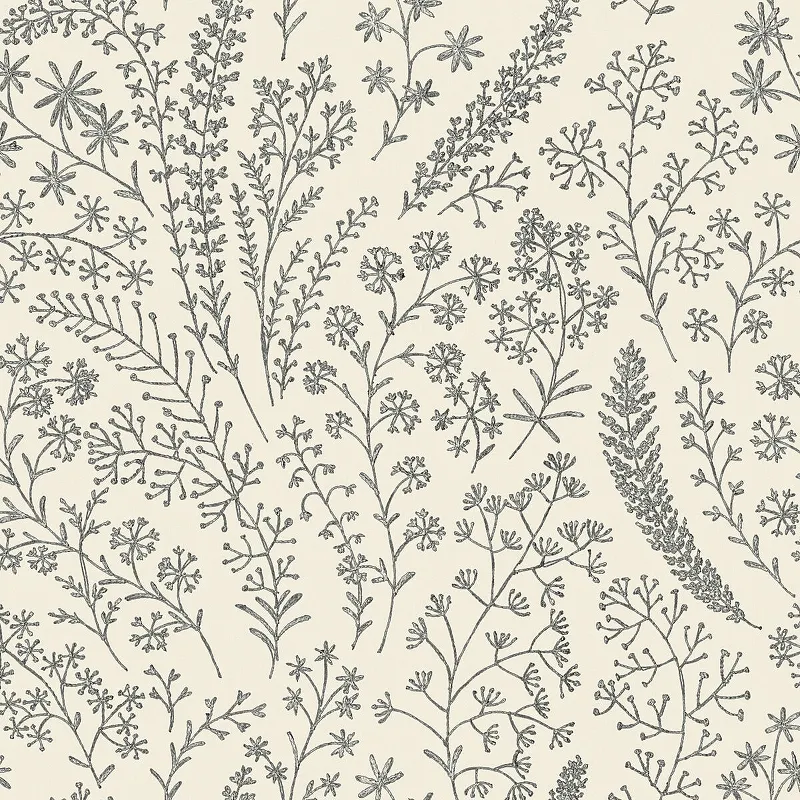 Обои Grandeco Asperia A 58701 Винил на флизелине (0,53*10,05) Белый/Черный, Листья