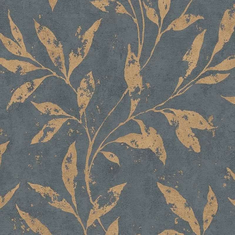 Обои Grandeco Avrora A69605 Винил на флизелине (1,06*10,05) Серый/Золото, Листья