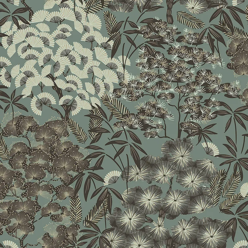 Обои Grandeco Ciara A 63002 Винил на флизелине (0,53*10,05) Зеленый/Бронзовый/Черный, Листья/Цветы