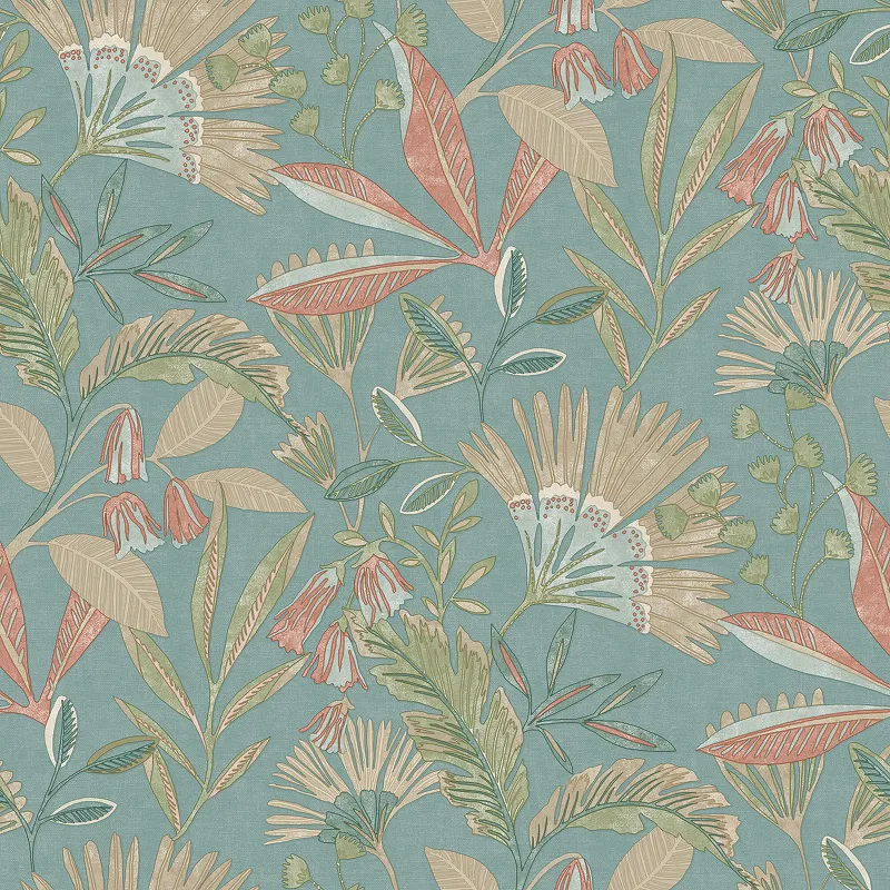 Обои Grandeco Ciara A 63802 Винил на флизелине (0,53*10,05) Бирюзовый/Разноцветный, Листья/Цветы