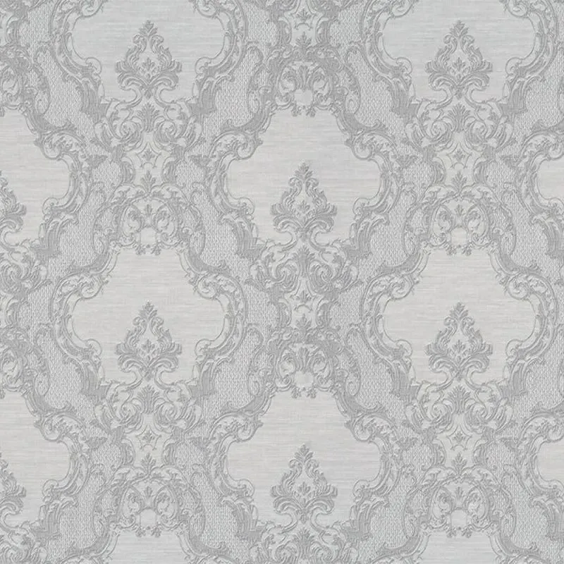 Обои Grandeco Fabrica арт-A43301 представляют собой виниловые рулонные обои на флизелиновой основе. Они выполнены в сером цвете с классическим дамасковым рисунком, что позволяет им гармонично вписываться в интерьер спальни или гостиной.