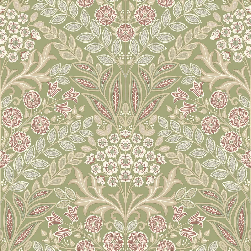 Обои Grandeco Icon IC 2114 Винил на флизелине (0,53*10,05) Зеленый/Розовый, Цветы/Листья