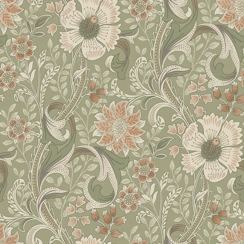 - Универсальный дизайн: Бежево-зеленые обои с цветами и листьями гармонично вписываются в любой интерьер, добавляя свежести и стиля.