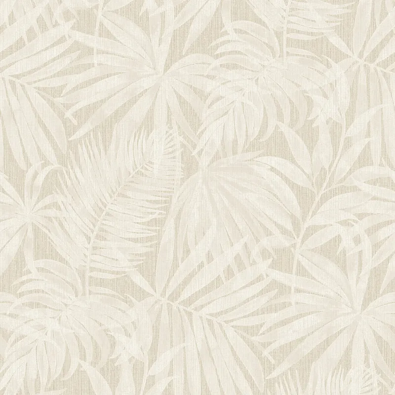 В комплект входят виниловые обои на флизелине размером 0,53*10,05 м в бежевом цвете с рисунком "Листья/Рогожка".