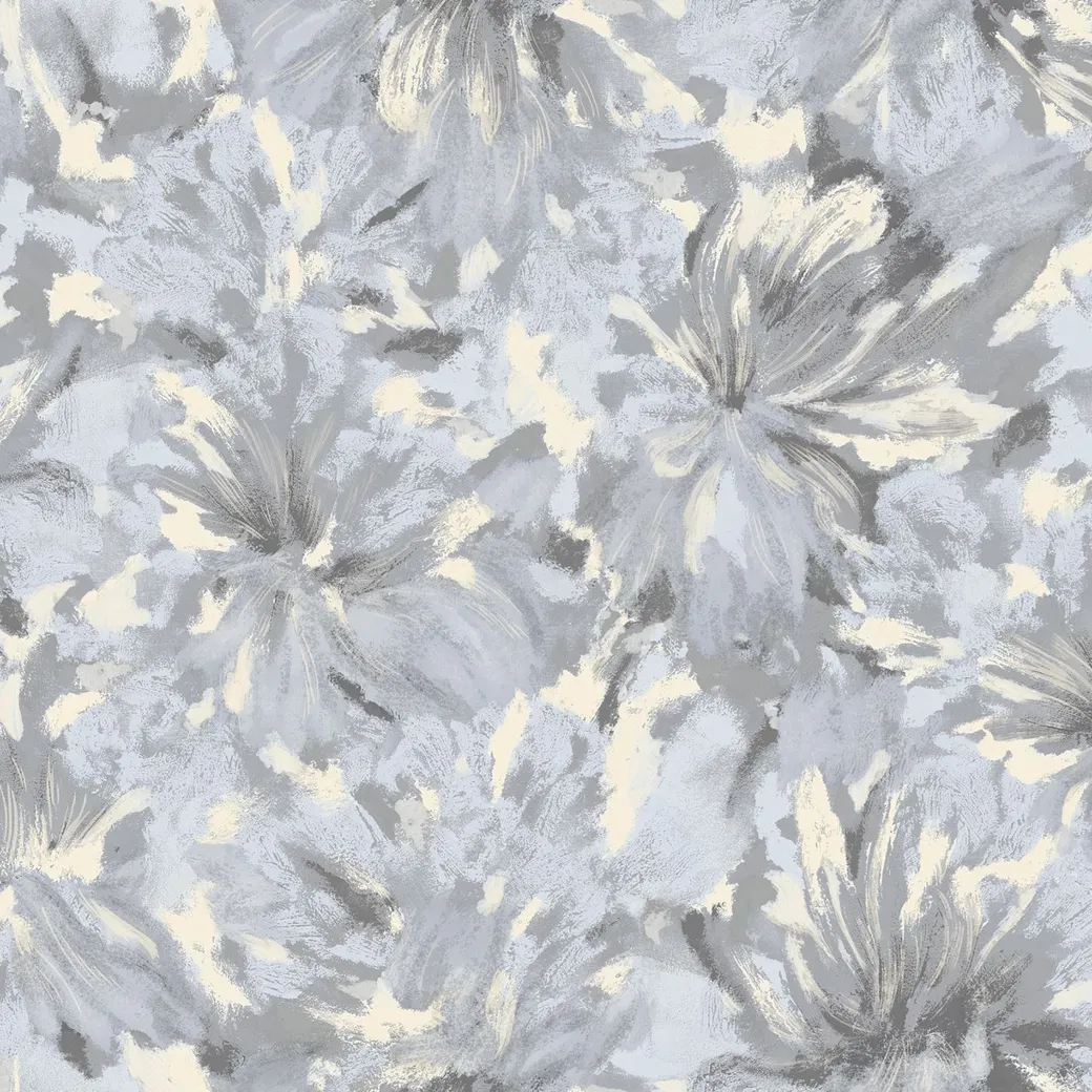 Обои Grandeco Secret R152103 Винил на флизелине (1,06*10,05) Серый/Голубой, Цветы/Штукатурка