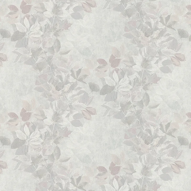 Обои Grandeco Time 2025 TI 2003 Винил на флизелине (1,06*10,05) Серый/Розовый/Белый, Листья