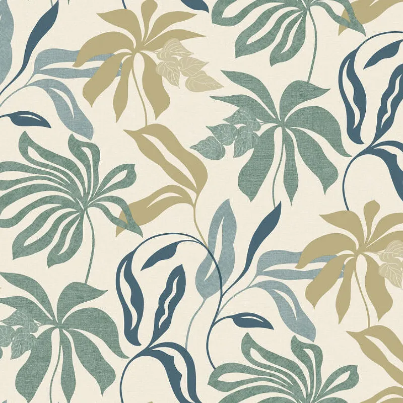Обои Grandeco Universe 4 UR 3410 Винил на флизелине (1,06*10,05) Бежевый/Синий/Зеленый, Листья/Рогожка