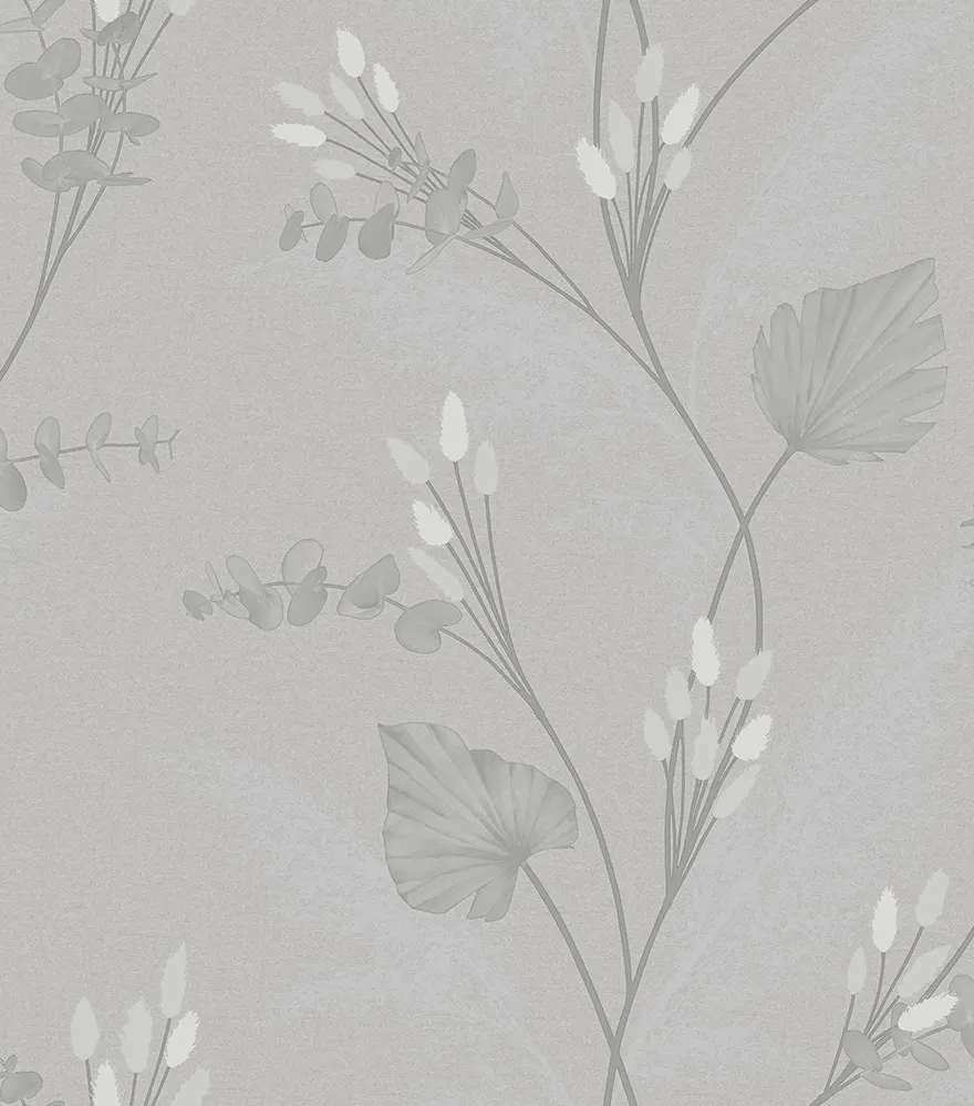 Обои Holden Decor Eleganza арт-36251 представляют собой виниловые рулонные обои с рисунком растений. Эти обои с серым фоном подходят для современных интерьеров и могут использоваться в различных помещениях, таких как гостиная и спальня.
