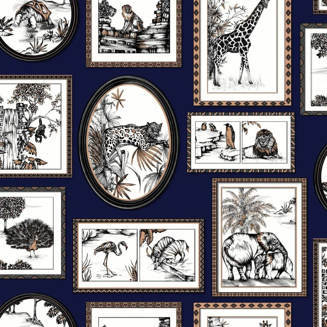 Обои Holden Decor Glasshouse арт-90232 — это флизелиновые полотна, предназначенные для создания стильного интерьера. Они выполнены в темно-синем цвете и украшены сюжетным рисунком с изображениями животных, что добавляет оригинальности помещению.