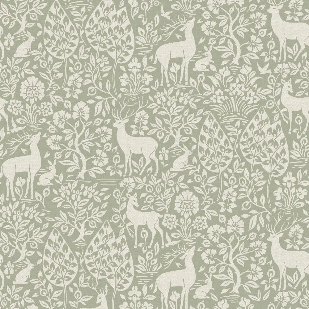 Обои Holden Decor арт-14160 из коллекции Imaginarium 3 представляют собой бумажные эко обои с характерным скандинавским и английским стилем. Они имеют зеленый цвет с изображениями животных и растений, что создает умиротворяющую атмосферу в помещении.
