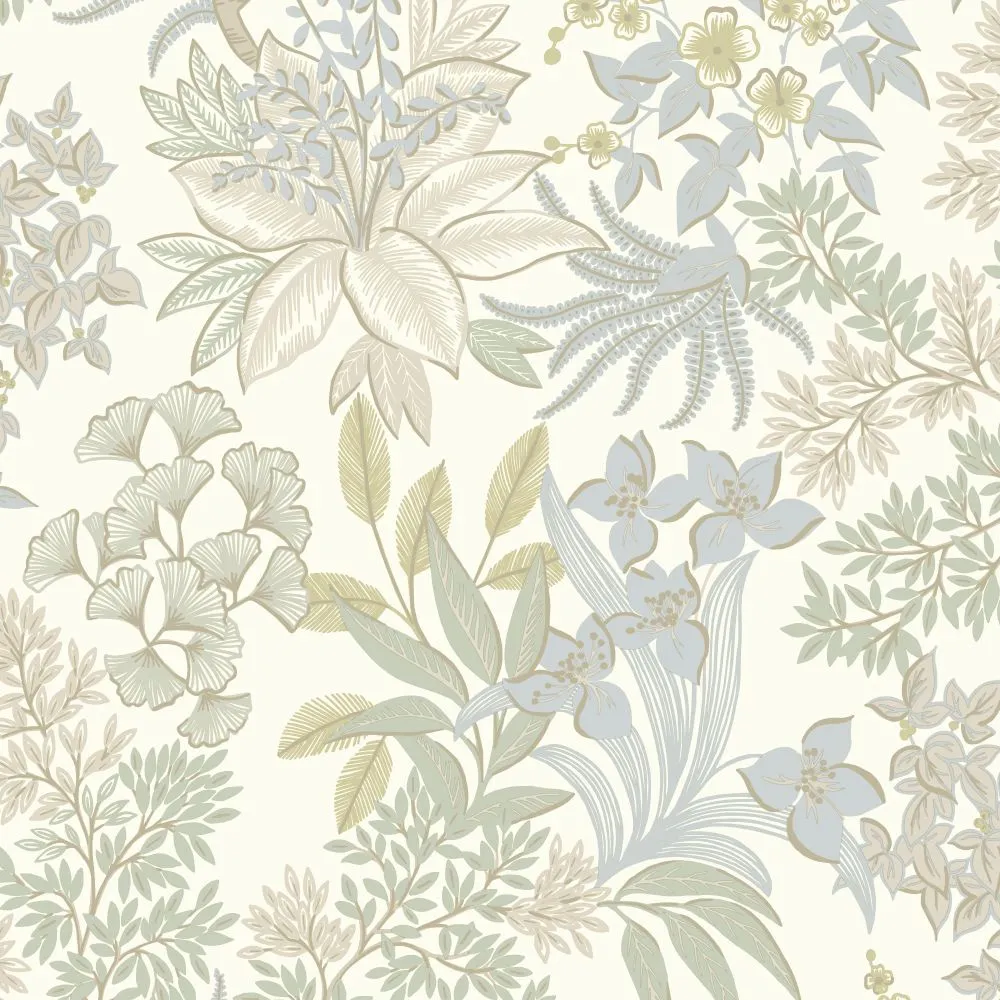 Обои Holden Decor арт-14222 представляют собой изделия английского производителя, выполненные в светлых бежевых и серых тонах. Они идеально подходят для оформления интерьеров в спальне, кухне и гостиной, благодаря своему успокаивающему дизайну с растительными мотивами.