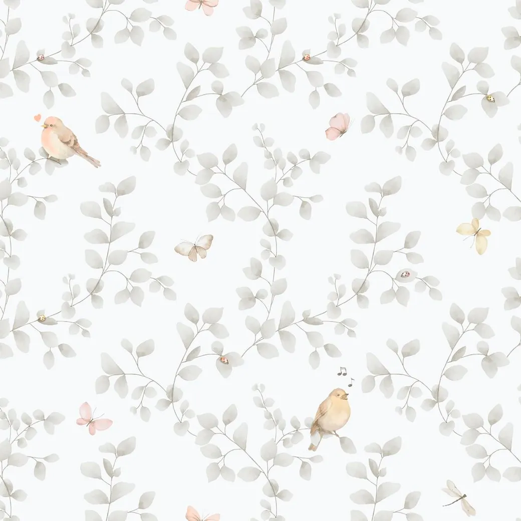 - Тематика рисунка: Декор в виде птиц и растений создает атмосферу спокойствия.
