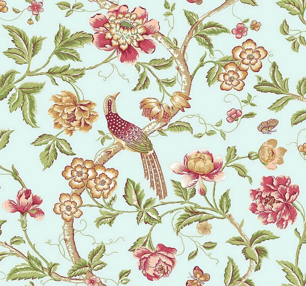 Обои Jaima Brown JB91202 из коллекции Notting Hill представляют собой рулонные бумажные покрытия с ярким и разнообразным дизайном. Основной цвет – голубой, дополненный рисунками цветов и птиц, что создает атмосферу свежести и оптимизма в интерьере.