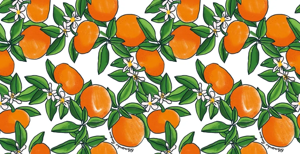 - Рисунок с растениями и фруктами создаёт уютную атмосферу в интерьере.