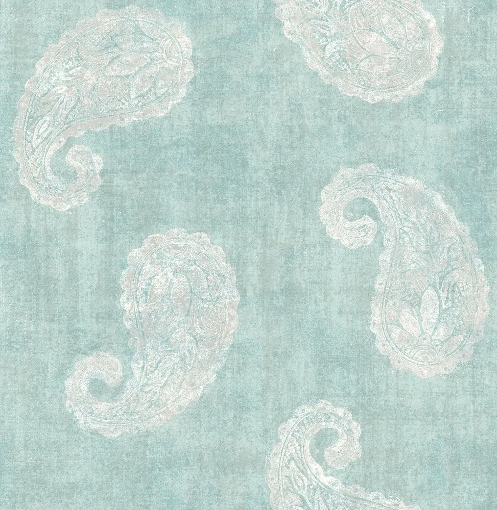 Обои FD22415 от английского бренда Kenneth James относятся к коллекции Azmaara. Они выполнены в восточном стиле и имеют орнамент в виде пейсли. Основные цвета — голубой и мятный, что придаёт помещению свежий и лёгкий вид.