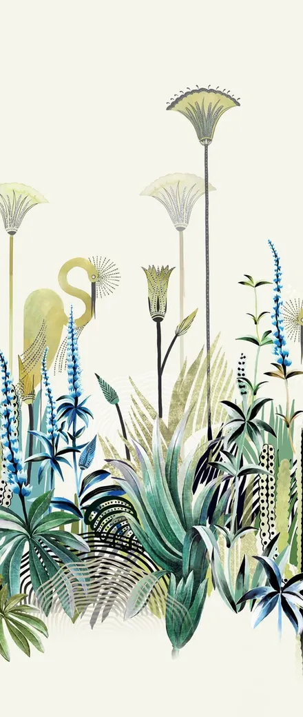 Обои Khroma Agathe арт-DGAGA1012 — это флизелиновые фотообои, произведенные в Бельгии. Они оформлены в нежных бежевых, зеленых и разноцветных оттенках с изображениями растений и птиц, что создает расслабляющую атмосферу в интерьере.