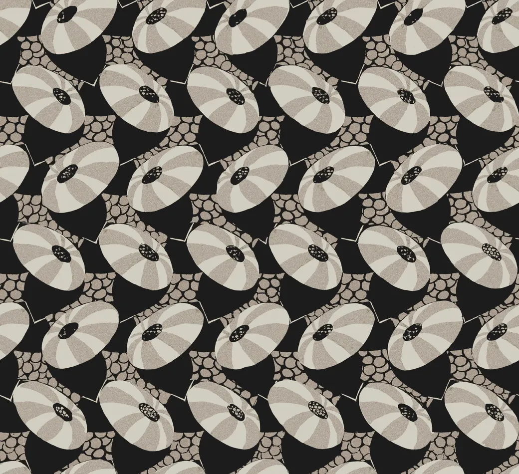 Обои Khroma Folies арт-FOL003 представляют собой флизелиновые рулонные обои, произведенные в Бельгии. Они имеют уникальный дизайн в стиле ар-деко с кругами, что делает их подходящими для современных интерьеров, включая гостиные и спальни.