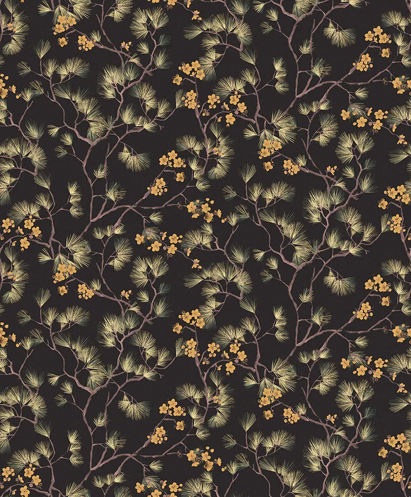 Обои Khroma Kimono арт-KIM106 обеспечивают легкость укладки и долговечность благодаря флизелиновой основе. Их растительный декор и темный цвет создают уютную атмосферу, подходящую для различных типов помещений.