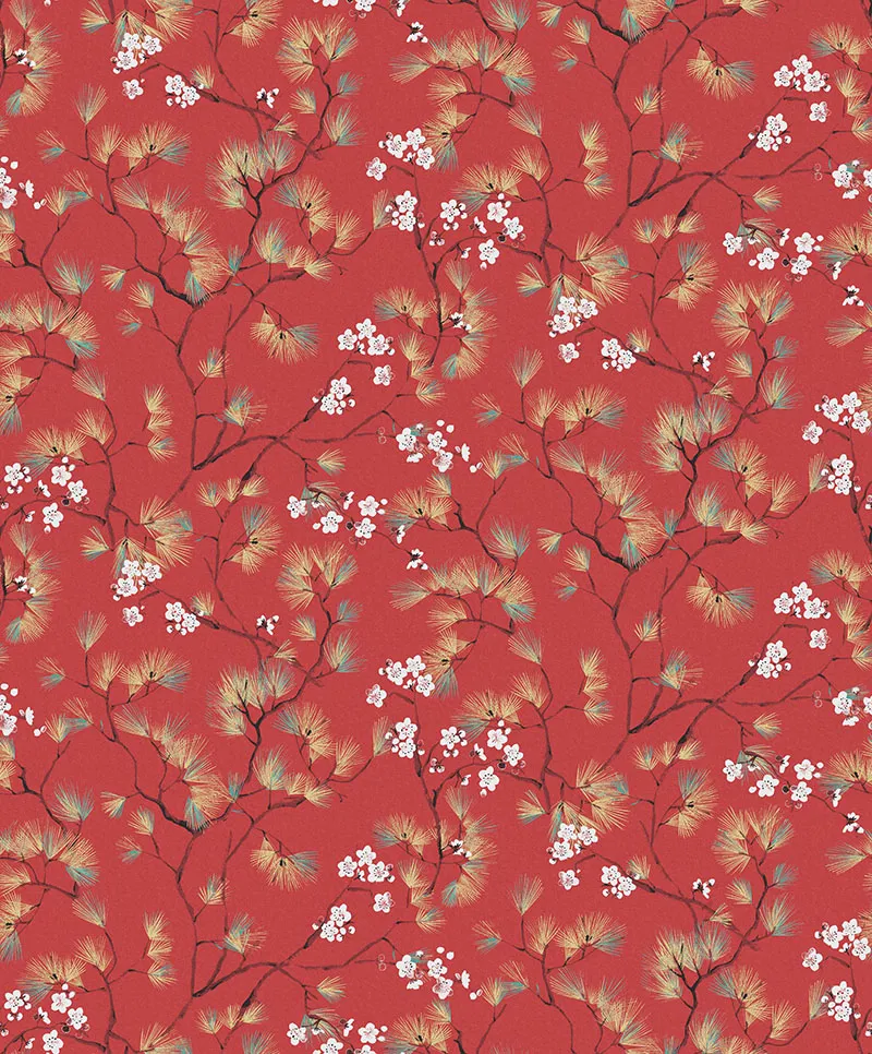 Обои Khroma Kimono арт-KIM107 — это флизелиновые рулонные обои, произведенные в Бельгии. Их яркий красный цвет и нежный рисунок с элементами флоры делают их подходящими для различных интерьеров, включая спальни и кабинеты.