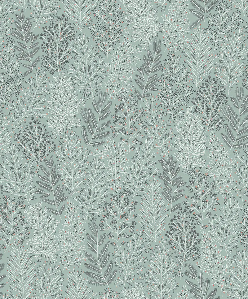 Обои HAP702 от Khroma Zoom представляют собой флизелиновые рулонные обои, созданные в Бельгии. Эти обои имеют успокаивающие зеленые и мятные оттенки, что делает их идеальными для детских помещений. Рисунок, изображающий растения и ветки, создает уютную атмосферу.