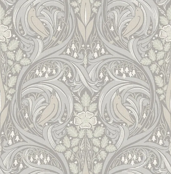 Обои MR70107 от марки KT-Exclusive представляют собой рулонные бумажные обои в сером цвете. Выпущены в рамках коллекции Art Nouveau Origins, они посвящены английскому стилю и изображают мотивы птиц. Эти обои подойдут для различных помещений, включая кабинеты, гостиные и спальни.