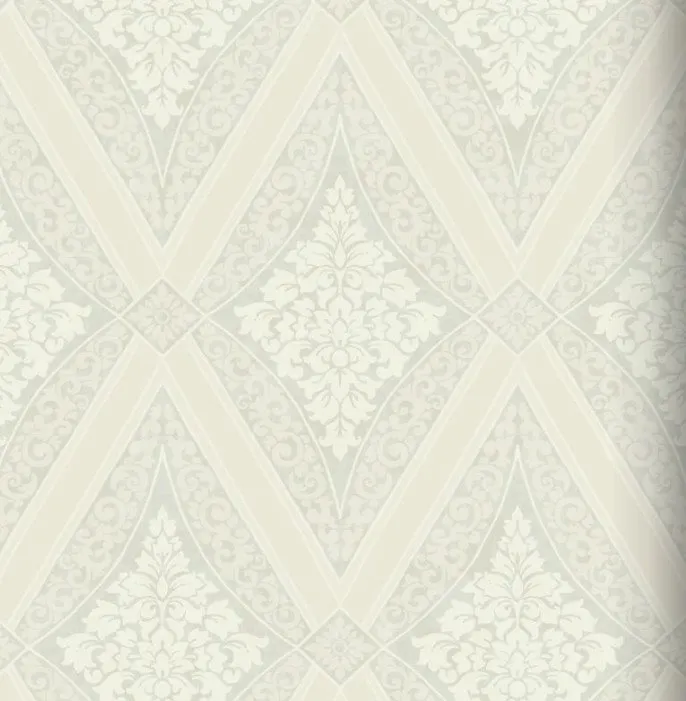 Обои AD50700 от KT-Exclusive представлены в коллекции Champagne Damasks. Они выполнены в светлых бежевых и серых тонах с восточным рисунком в виде ромбов, что делает их подходящими для различных интерьеров, таких как спальня, кабинет и гостиная.