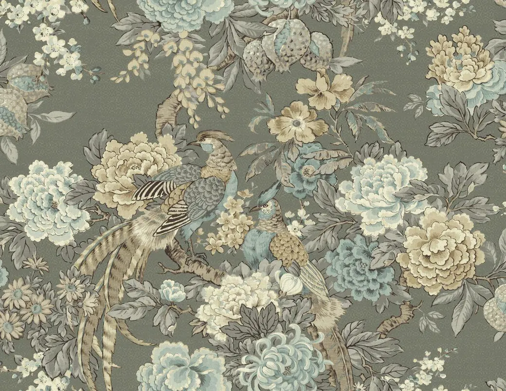 Обои KT-Exclusive English Rose (арт. EN10908) представляют собой рулонные бумажные обои, созданные для оформления различных интерьеров. Их характерный черный цвет и изысканный рисунок с изображением цветов и птиц придают помещению стильный и современный вид.