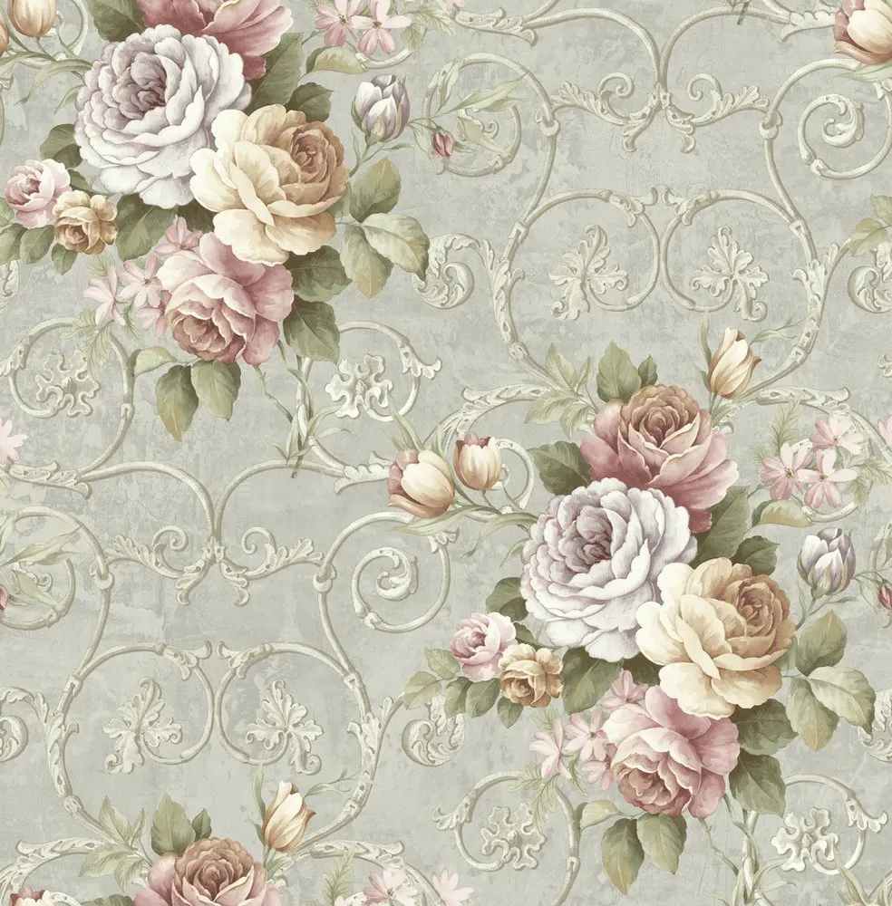 Обои VL71201 от KT-Exclusive из коллекции Langdale представляют собой стильное решение для оформления интерьеров. Они выполнены из флизелина и имеют элегантный серый цвет с рисунком вензелей и цветов.