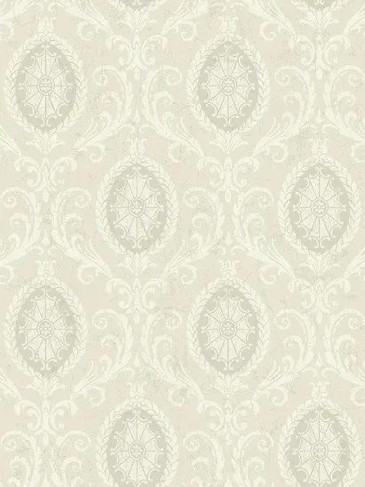 Обои AM90504 от KT-Exclusive представляют собой флизелиновый продукт из коллекции Mulberry Place. Их белый цвет и классический рисунок медальонов делают их универсальным решением для различных интерьеров, особенно в кабинетах.