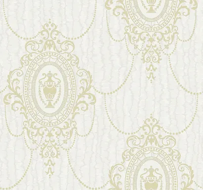 Обои AM91405 от KT-Exclusive представляют собой флизелиновый материал, выполненный в классическом стиле. Их белый цвет и изысканный рисунок с вазонами и медальонами делают эти обои подходящими для кабинетного интерьера, создавая атмосферу утонченности и стиля.