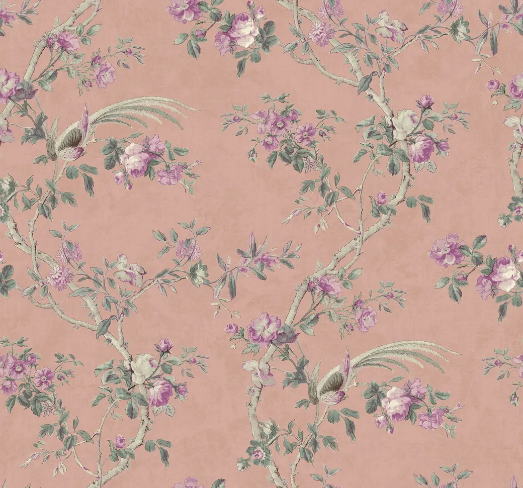 Обои SV60901 от компании KT-Exclusive представлены в коллекции Savannah House. Эти бумажные обои имеют уникальный дизайн с изображениями птиц и мелких цветов, что делает их подходящими для создания уютной атмосферы в интерьере. Обои выполнены в розовых тонах, что делает их идеальными для спальни или гостиной.