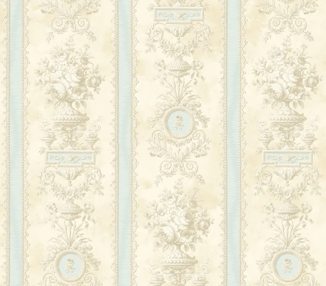 Обои SV61012 от KT-Exclusive принадлежат к коллекции Savannah House и подходят для создания стильных интерьеров. Они выполнены в светлых бежевых и голубых тонах, что позволяет легко комбинировать их с другими элементами декора. Это бумажные обои с узором, которые добавляют жилому пространству изысканности.