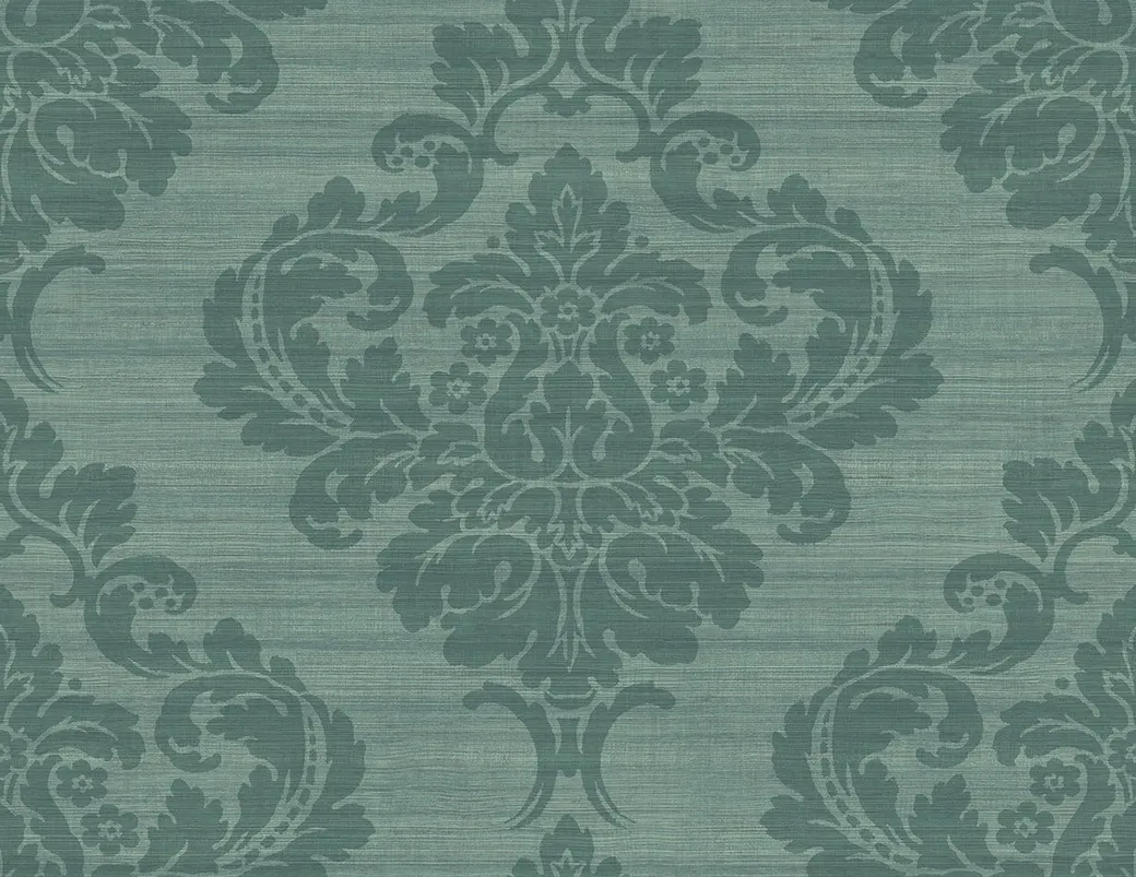 Обои RC10902 от KT-Exclusive представляют собой виниловые обои на бумажной основе с дамасским узором. Выполненные в успокаивающем зеленом цвете, они идеально подходят для оформления различных помещений, таких как гостиные или кабинеты.