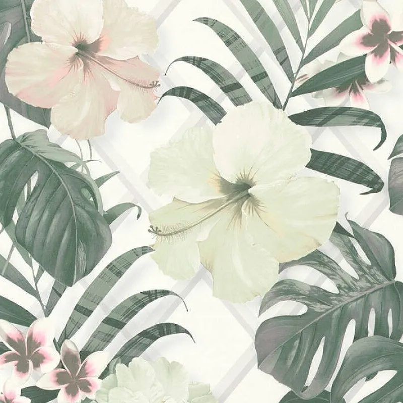 Обои Livingwalls Michalsky 3 36518-2 Винил на флизелине (0,53*10,05) Белый/Зеленый, Цветы/Листья
