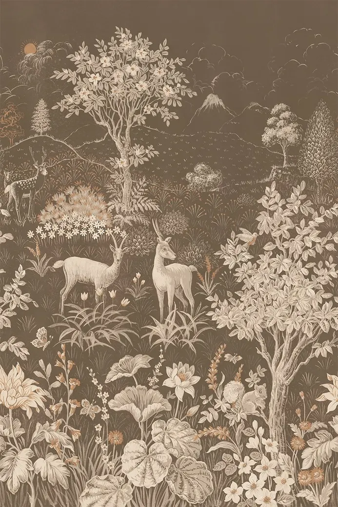 Обои Loymina Brit1-010 из коллекции British Style Forest выполнены в коричневом цвете и представляют собой флизелиновые фотообои с рисунком в стиле Уильяма Морриса. Они подходят для использования в спальне и гостиной, добавляя традиционный английский декор в интерьер.