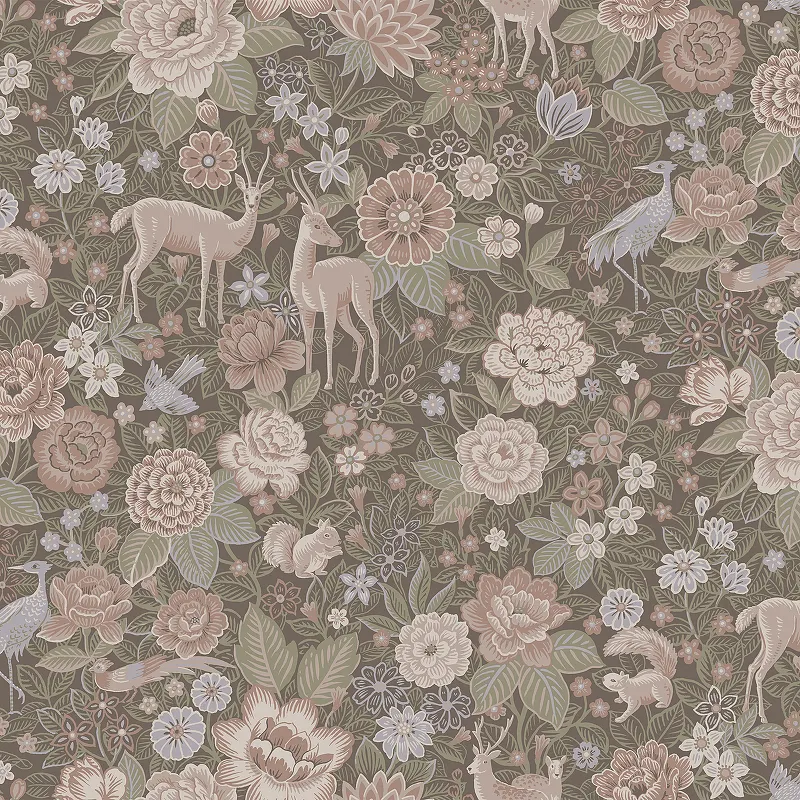 Обои LOYMINA British Style Forest BRIT3 012 Винил на флизелине (1*10,05) Коричневый/Зеленый/Бежевый, Цветы/Животные