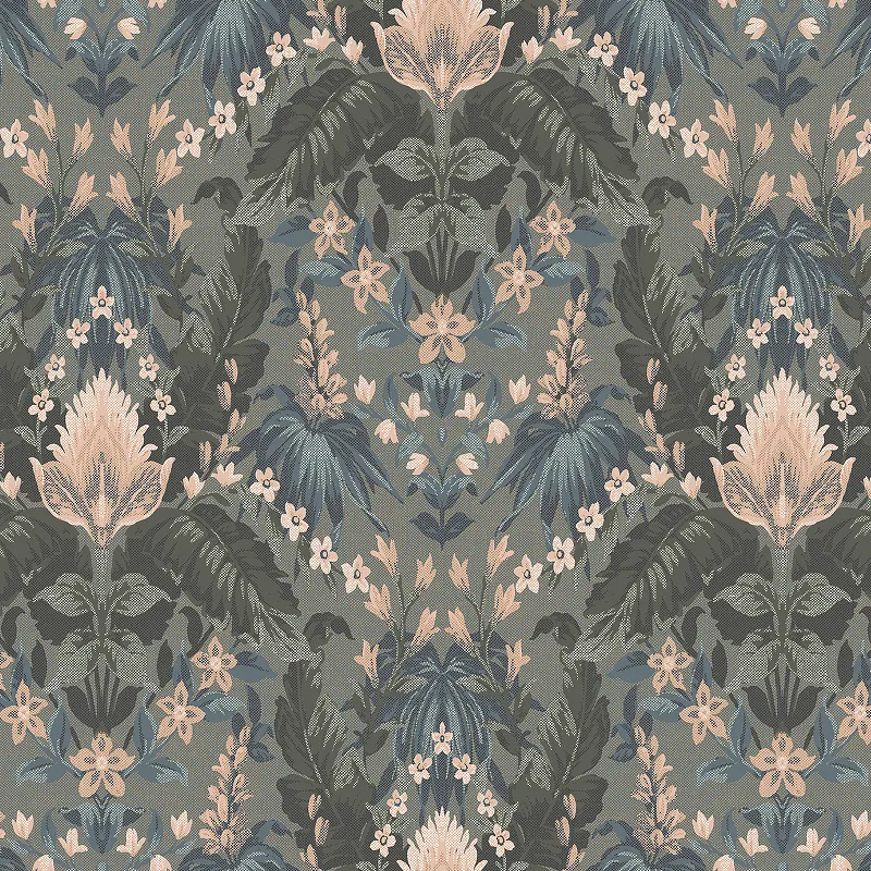 Обои LOYMINA British Style Forest BRIT6 005 Винил на флизелине (1*10,05) Зеленый/Синий/Бежевый, Листья/Цветы
