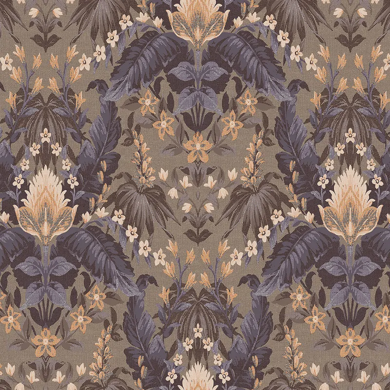 Обои LOYMINA British Style Forest BRIT6 012 Винил на флизелине (1*10,05) Коричневый/Фиолетовый, Листья/Цветы