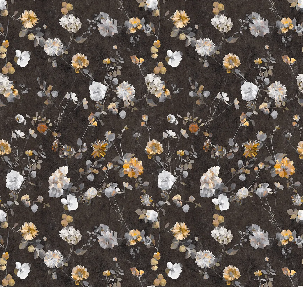 - Дизайн с цветочными мотивами в темных тонах создает глубину интерьера.
