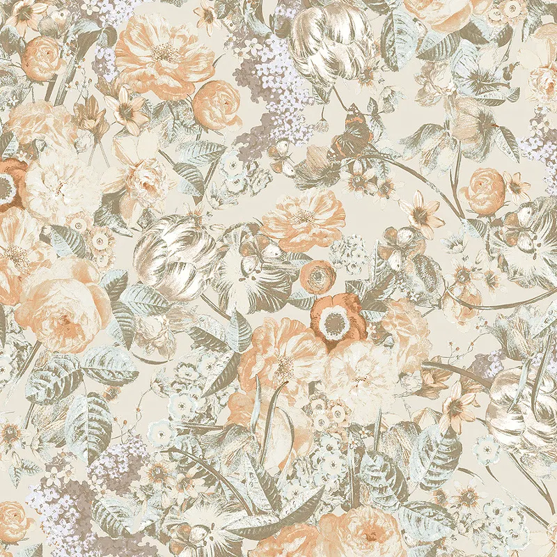 Обои LOYMINA La Belle Epoque BQ1 002/1 Винил на флизелине (1*10,05) Бежевый/Зеленый, Цветы/Бабочки